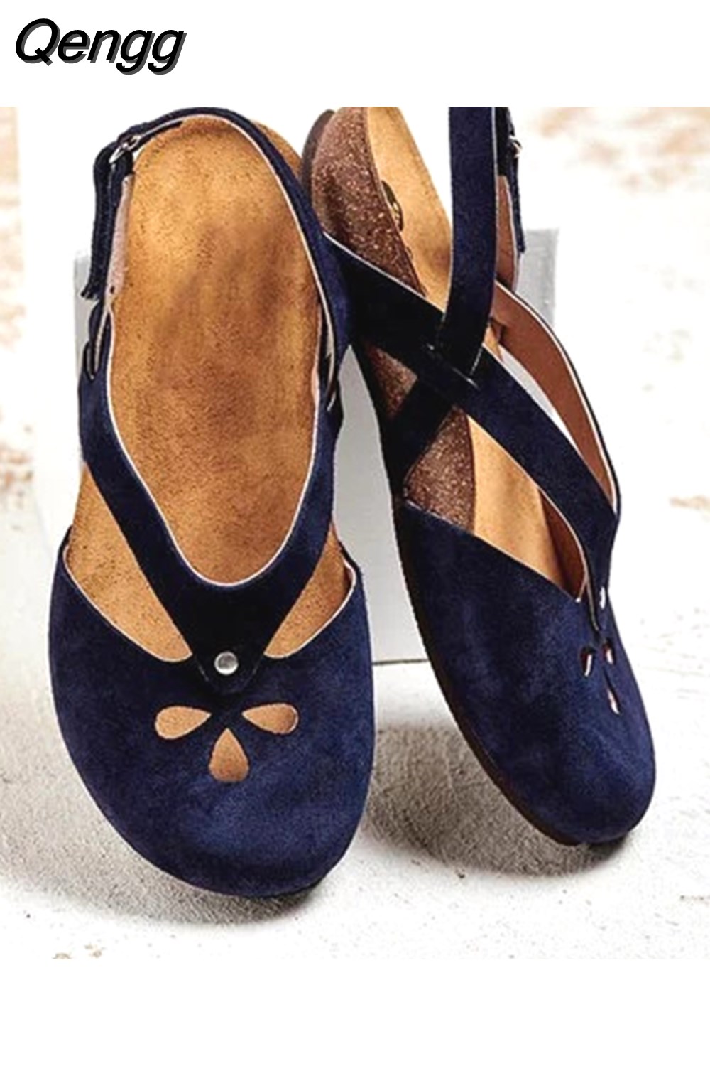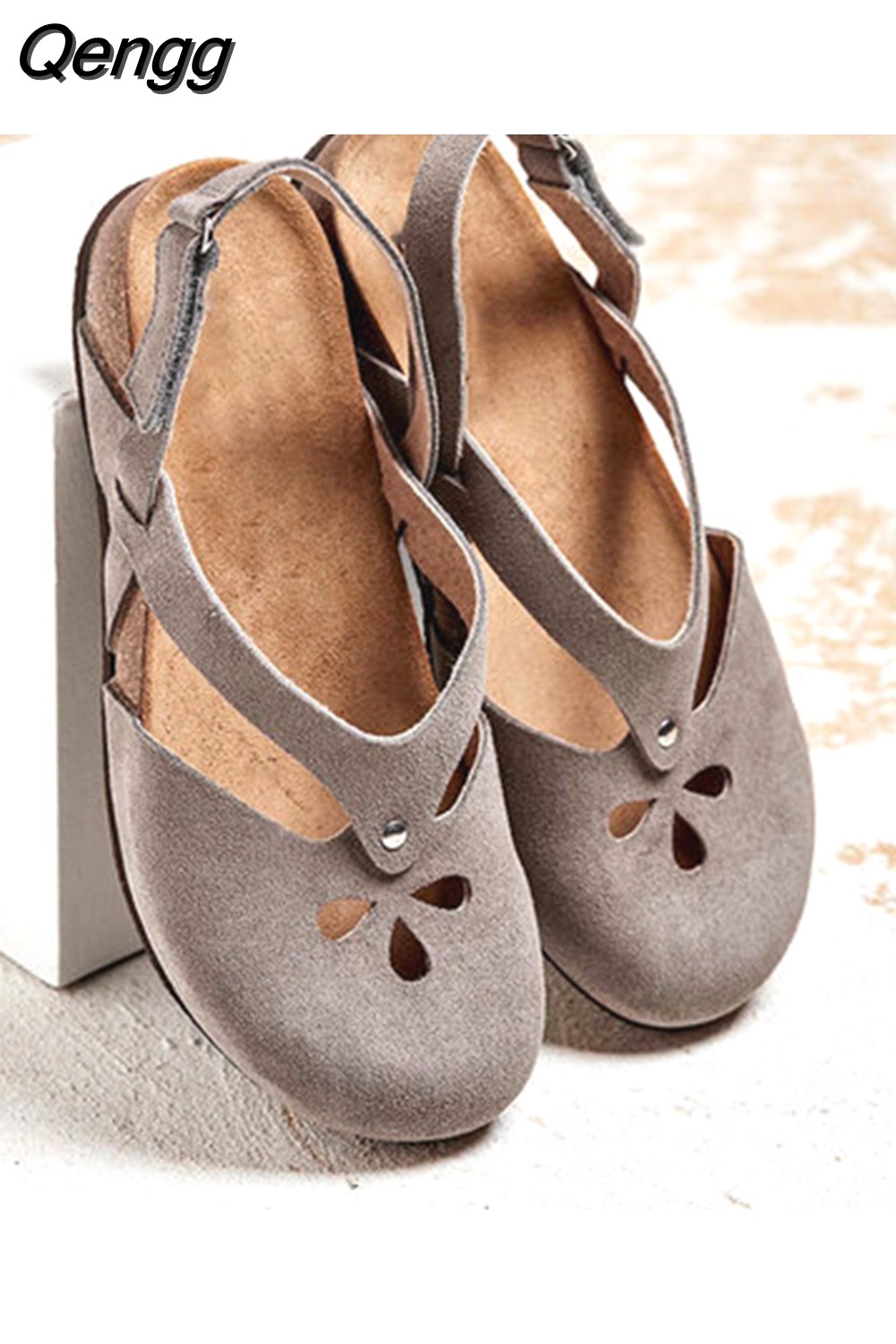 Niulatu Women Sandals Plus Size Flat Round Toe Sandals Female Casual Ankle Hollow Sandals Elegant Soft Beach Sole Women Shoes988 DJSE