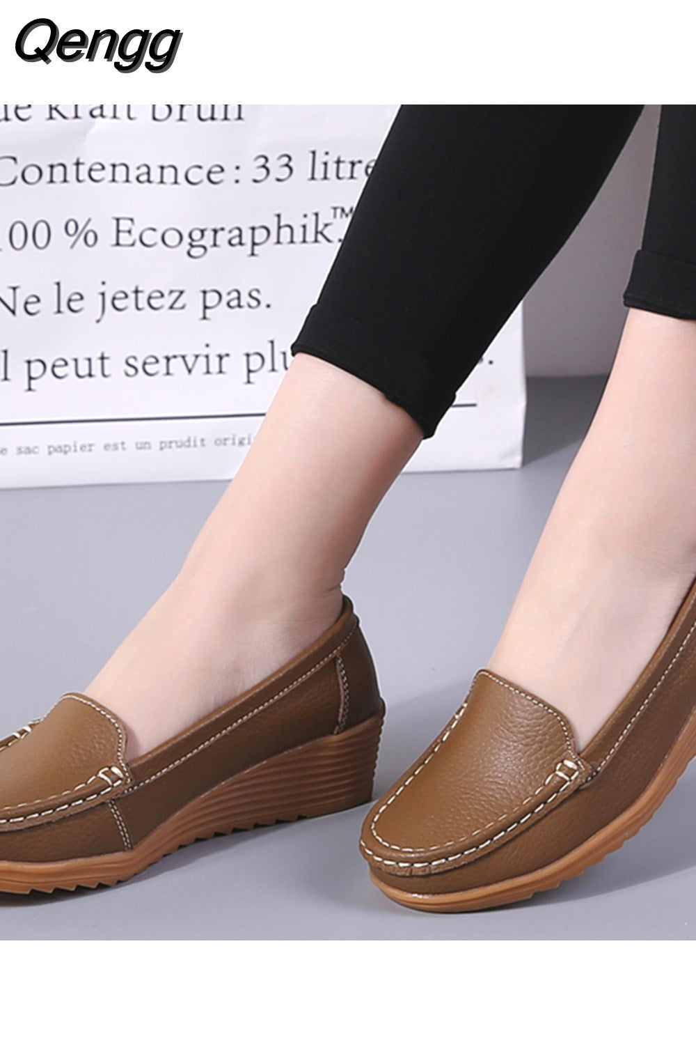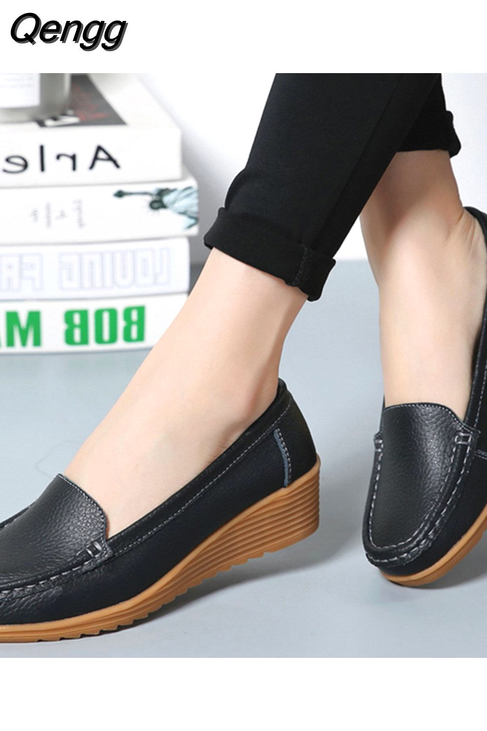 Niulatu Women Shoes 2025 New Leather Flat Shoes Slip On Women Loafers With Wedge Heels Casual Flats Zapatos Mujeres Moccasins Female DJSE