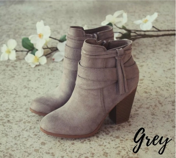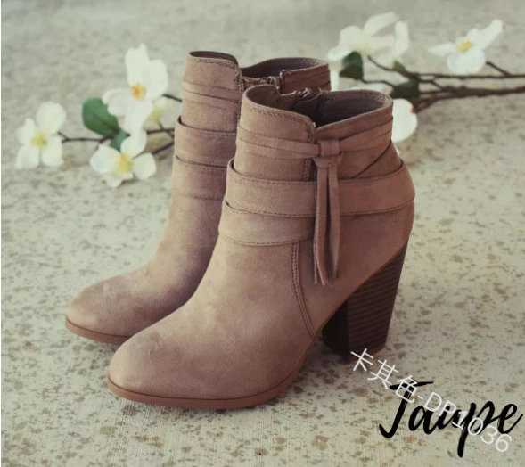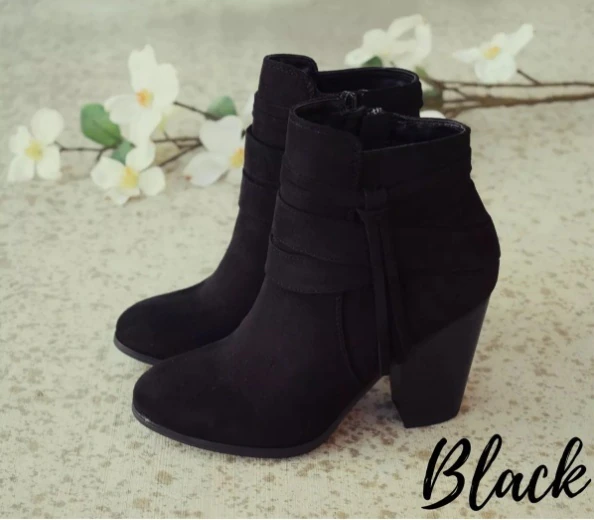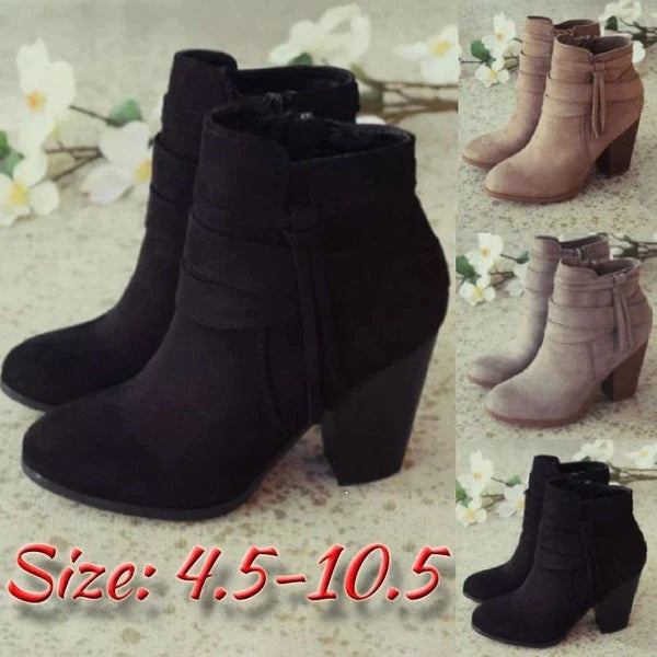 Niulatu Women Side Zipper Boots Fashion Suede Low Heel Shoes Women Short Boots Square Heels Casual Ankle Boots Plus Size 43 DJSE