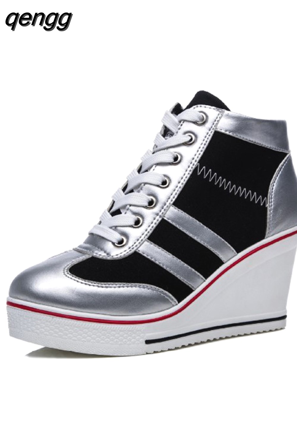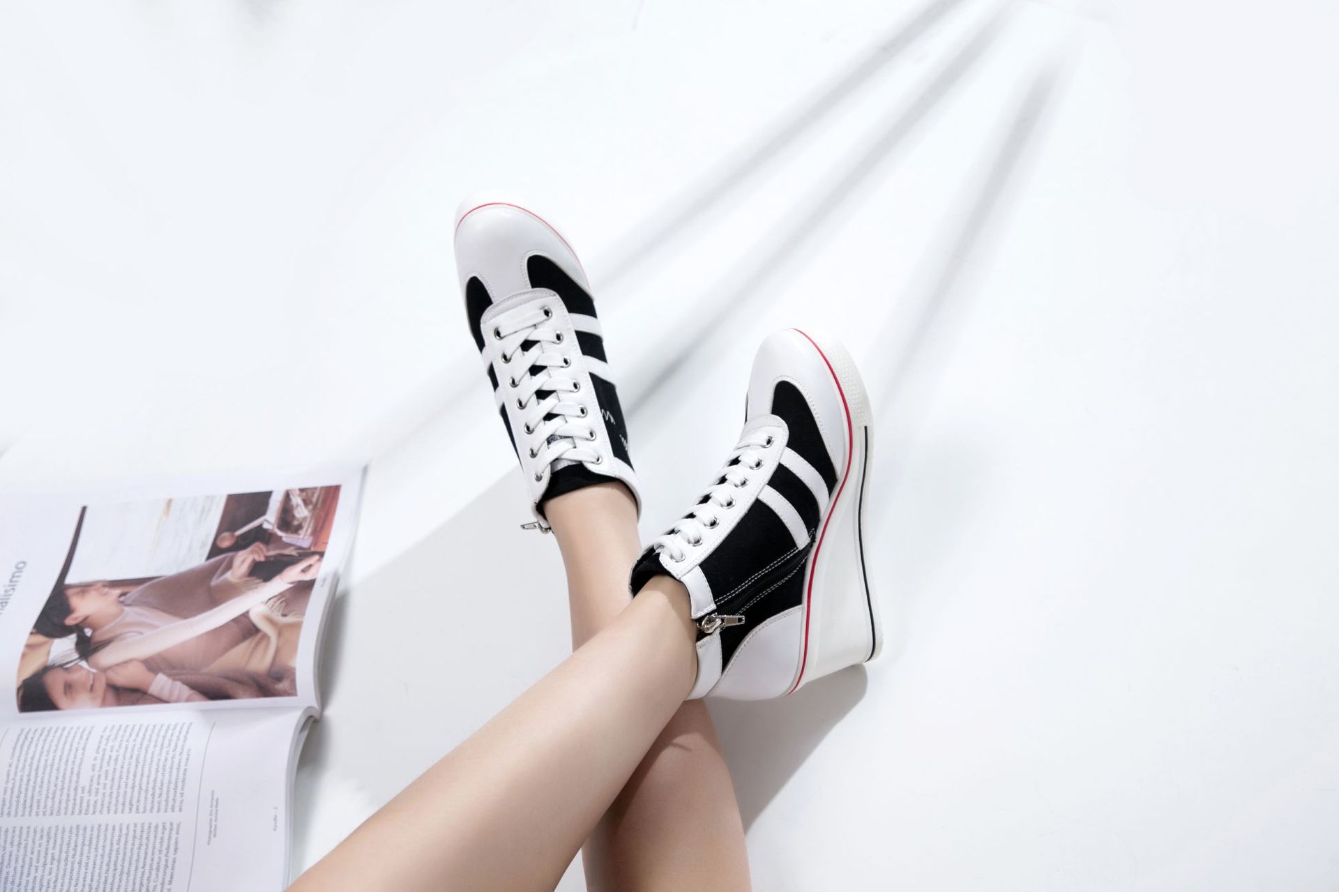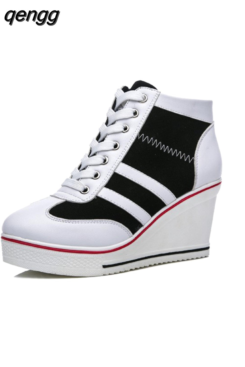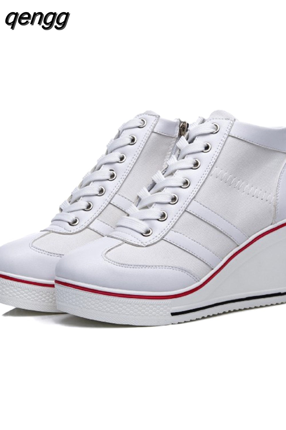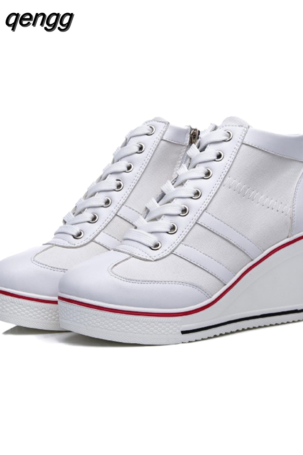 Niulatu Women Wedge Mesh Platform Casual Sneakers Side Zip Lace Cake Heel Booties 8cm Height Increased Canvas Stitching Color Shoes DJSE