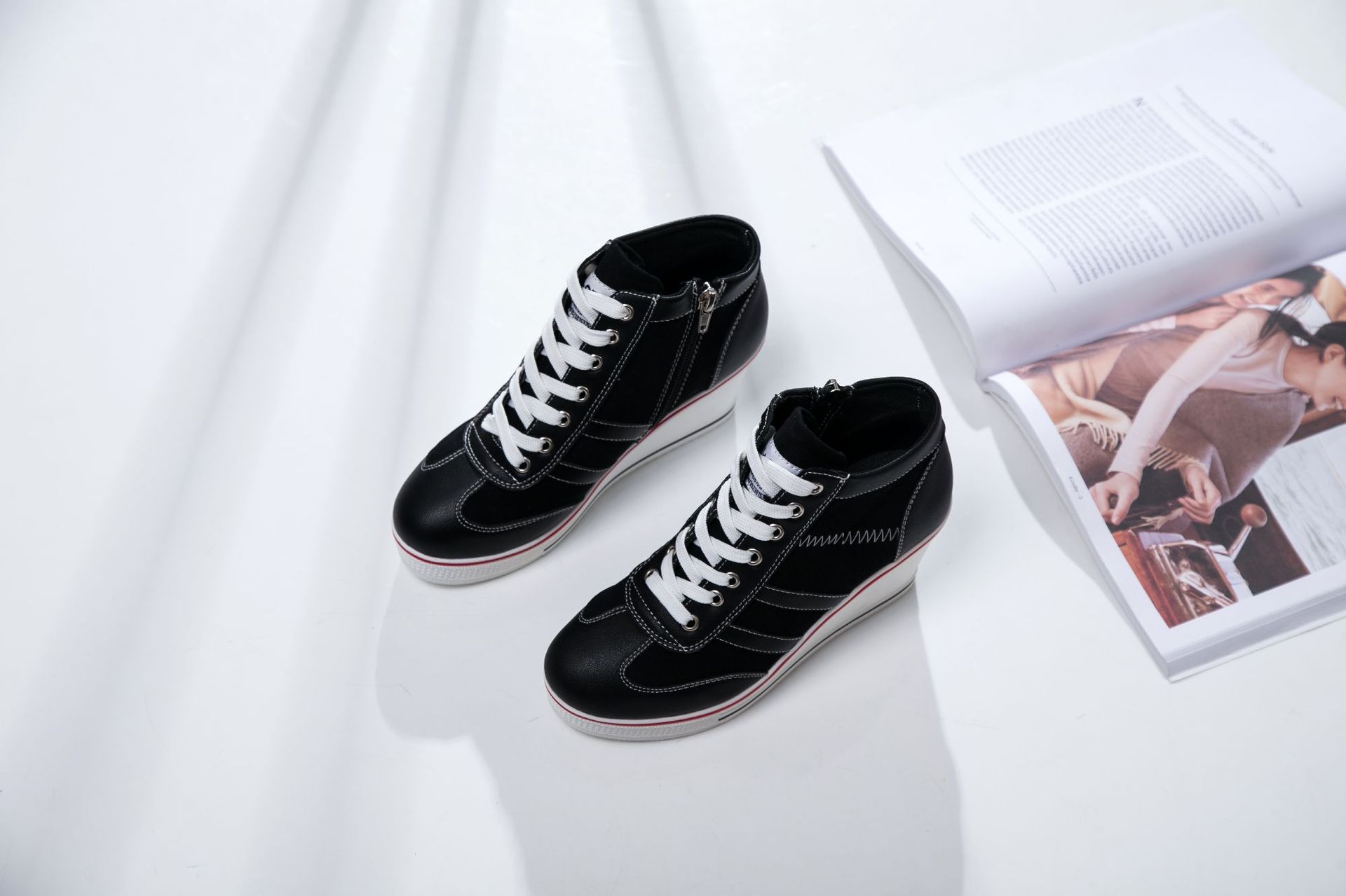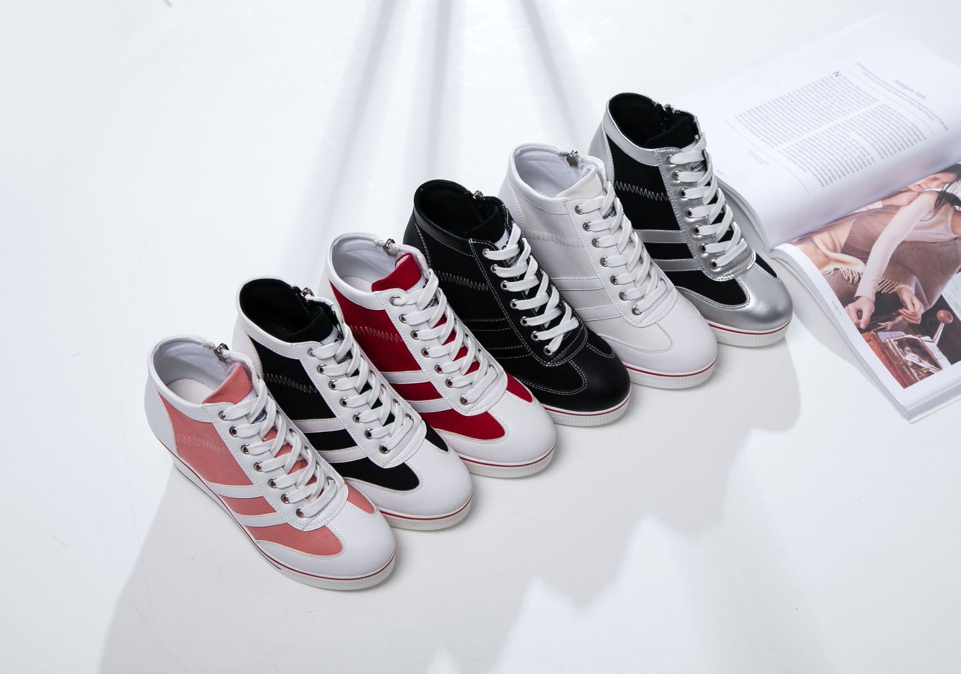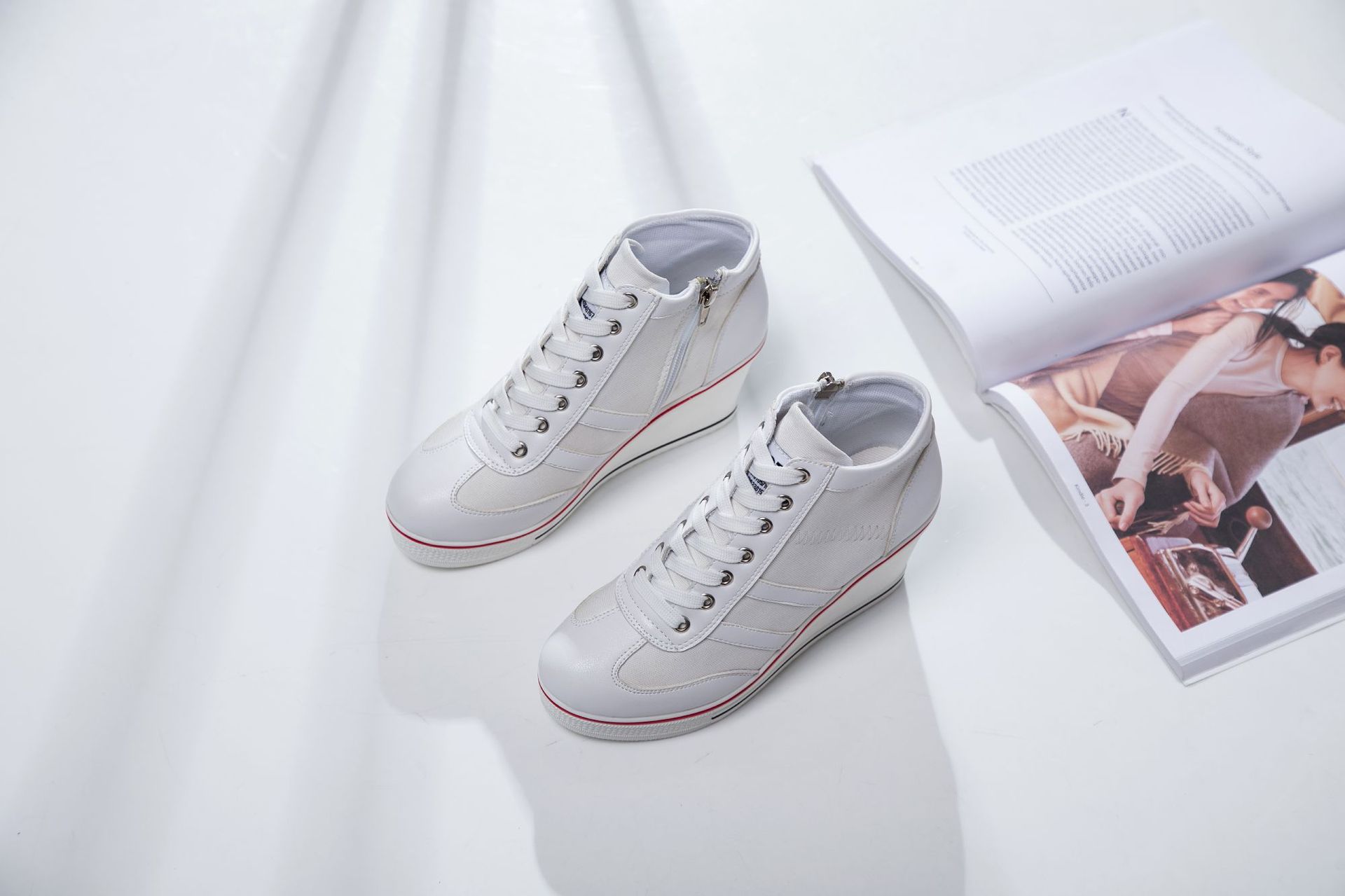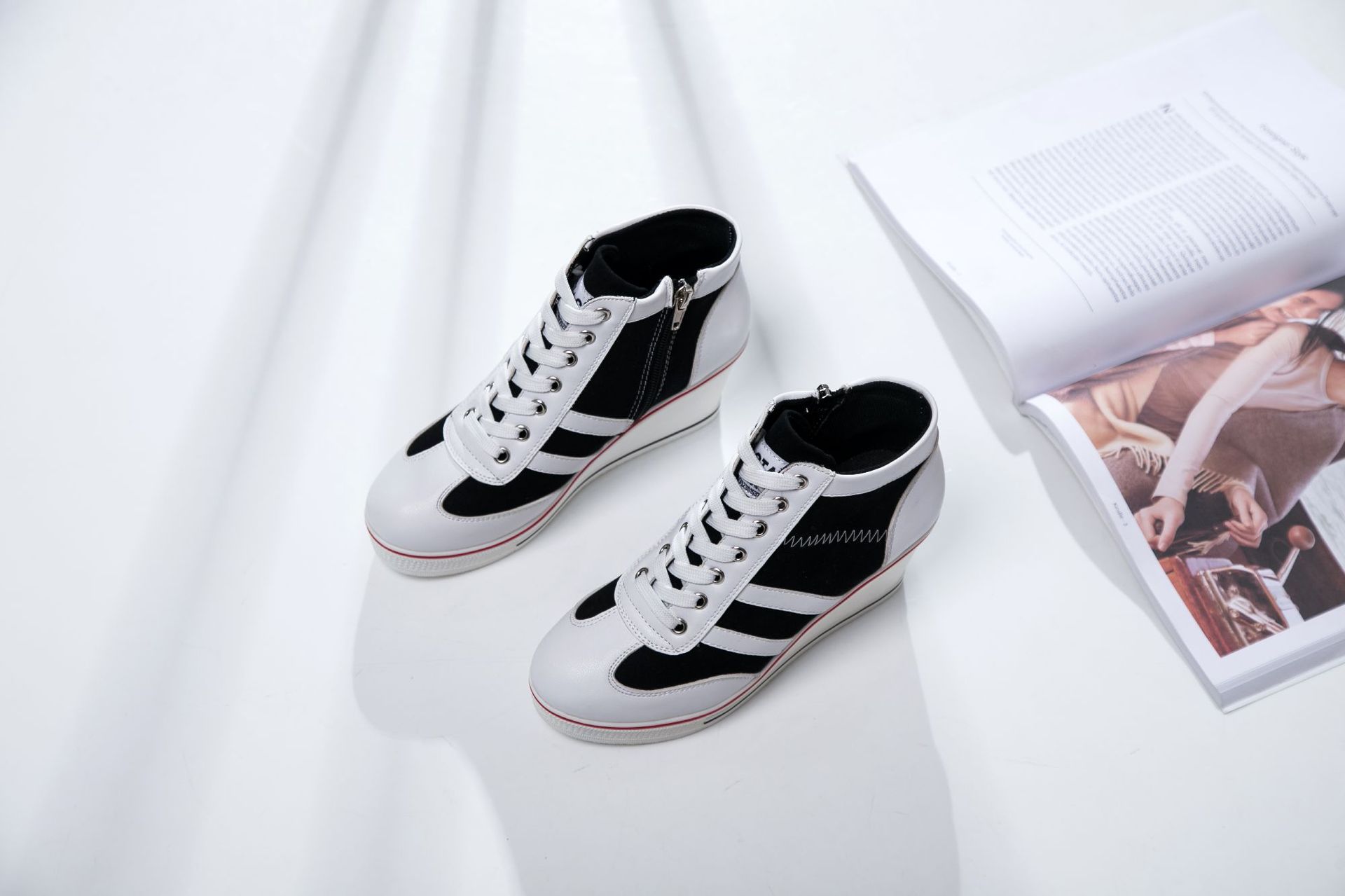 Niulatu Women Wedge Mesh Platform Casual Sneakers Side Zip Lace Cake Heel Booties 8cm Height Increased Canvas Stitching Color Shoes DJSE