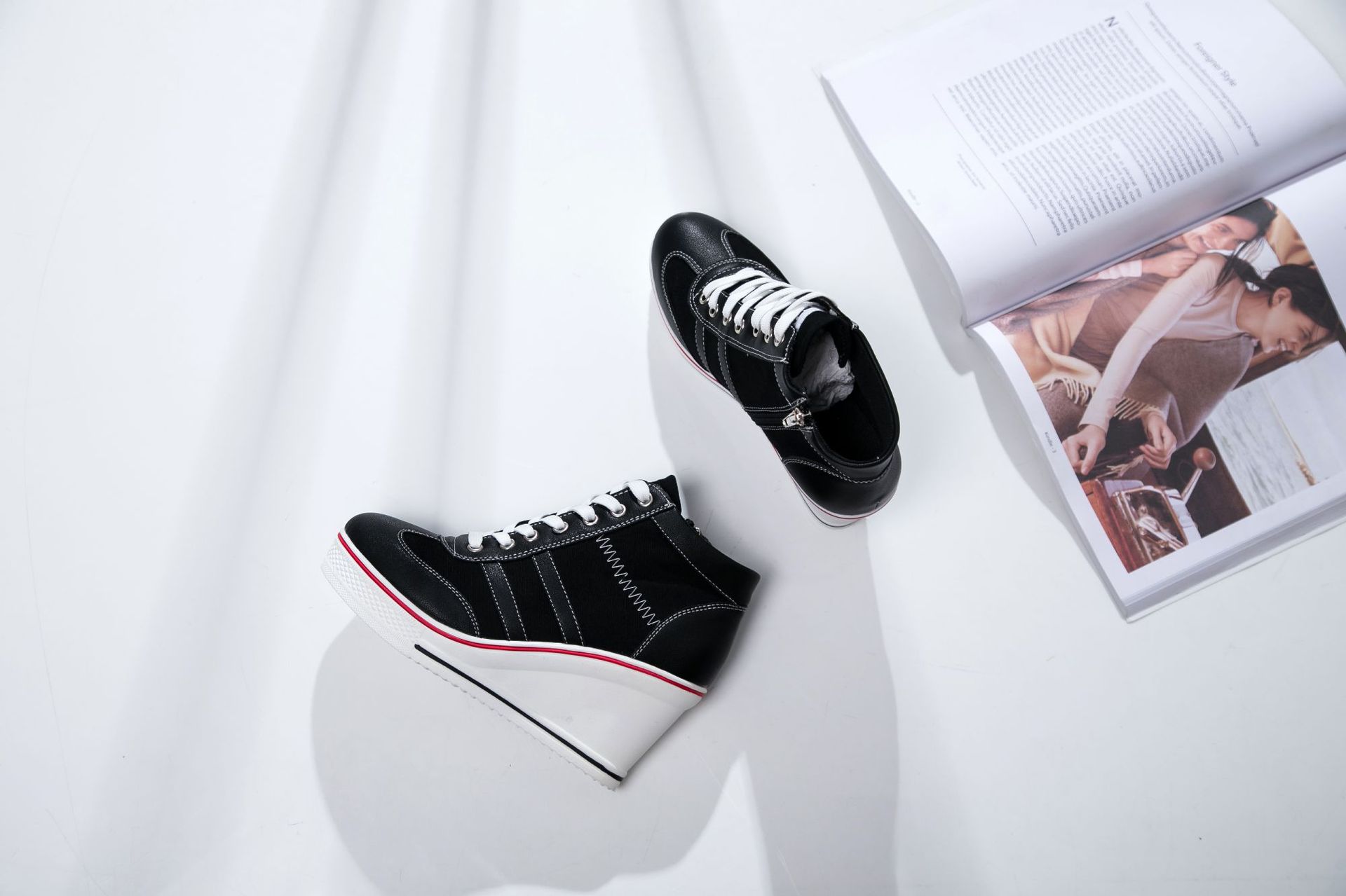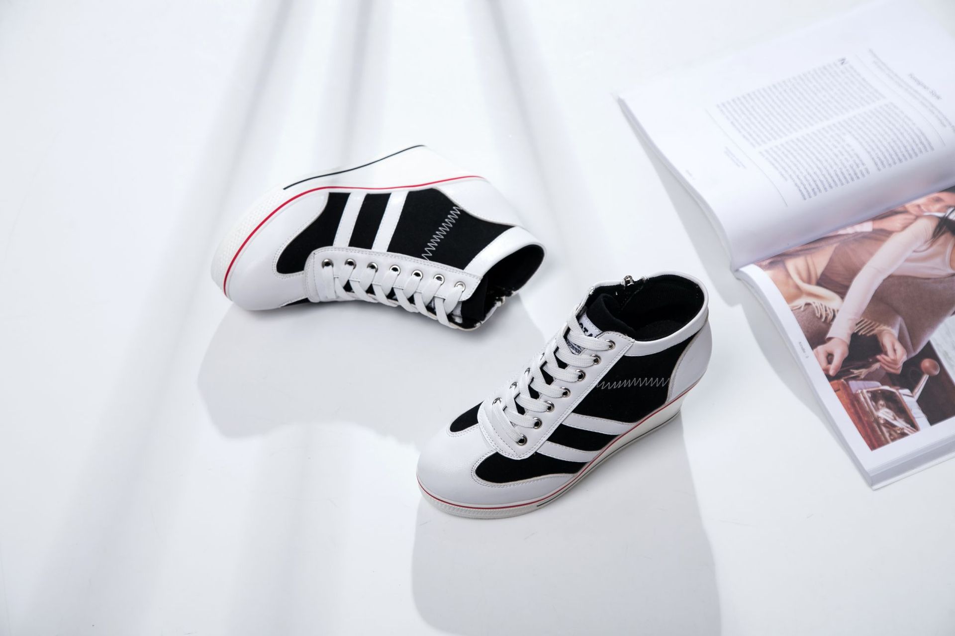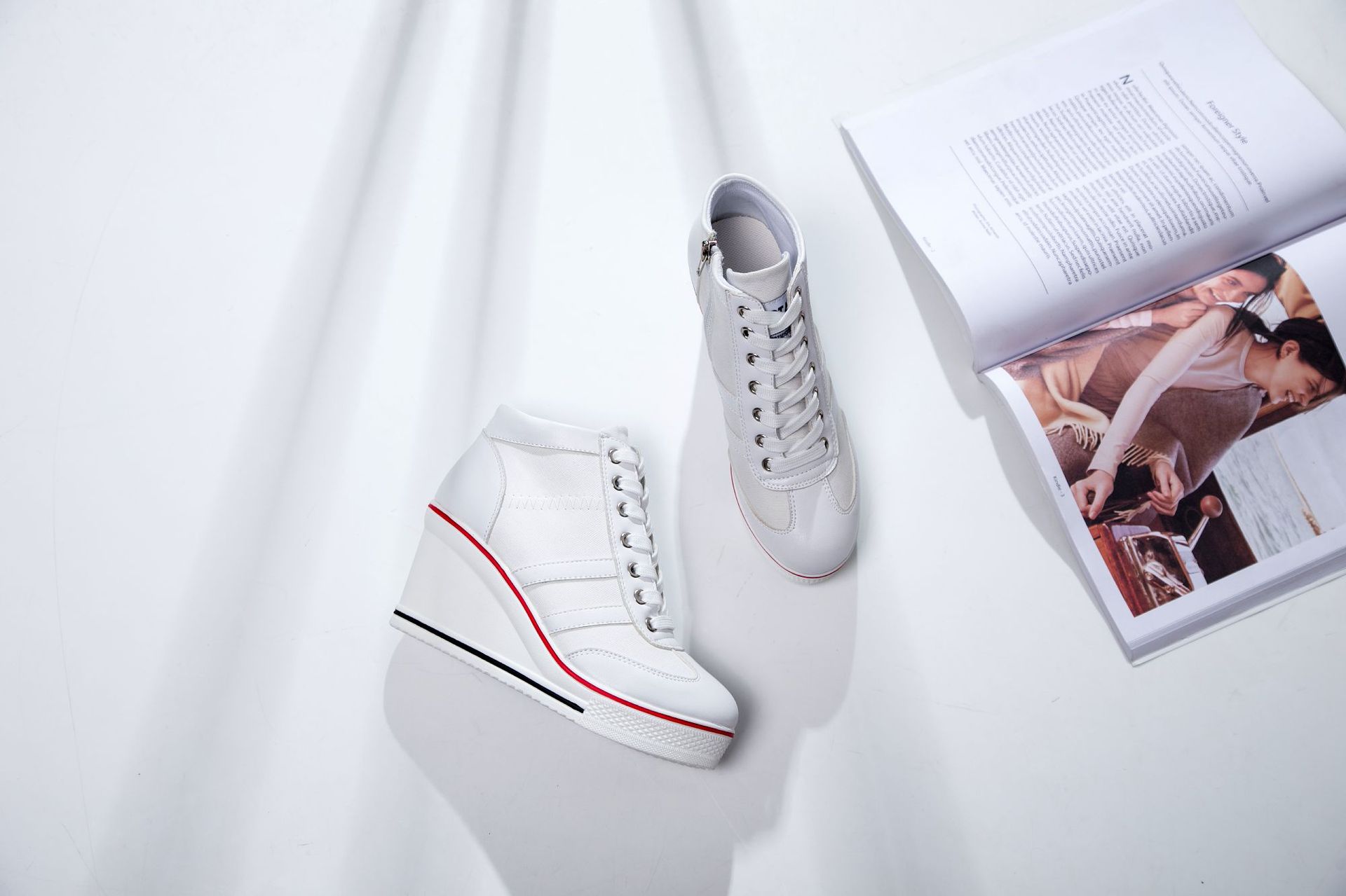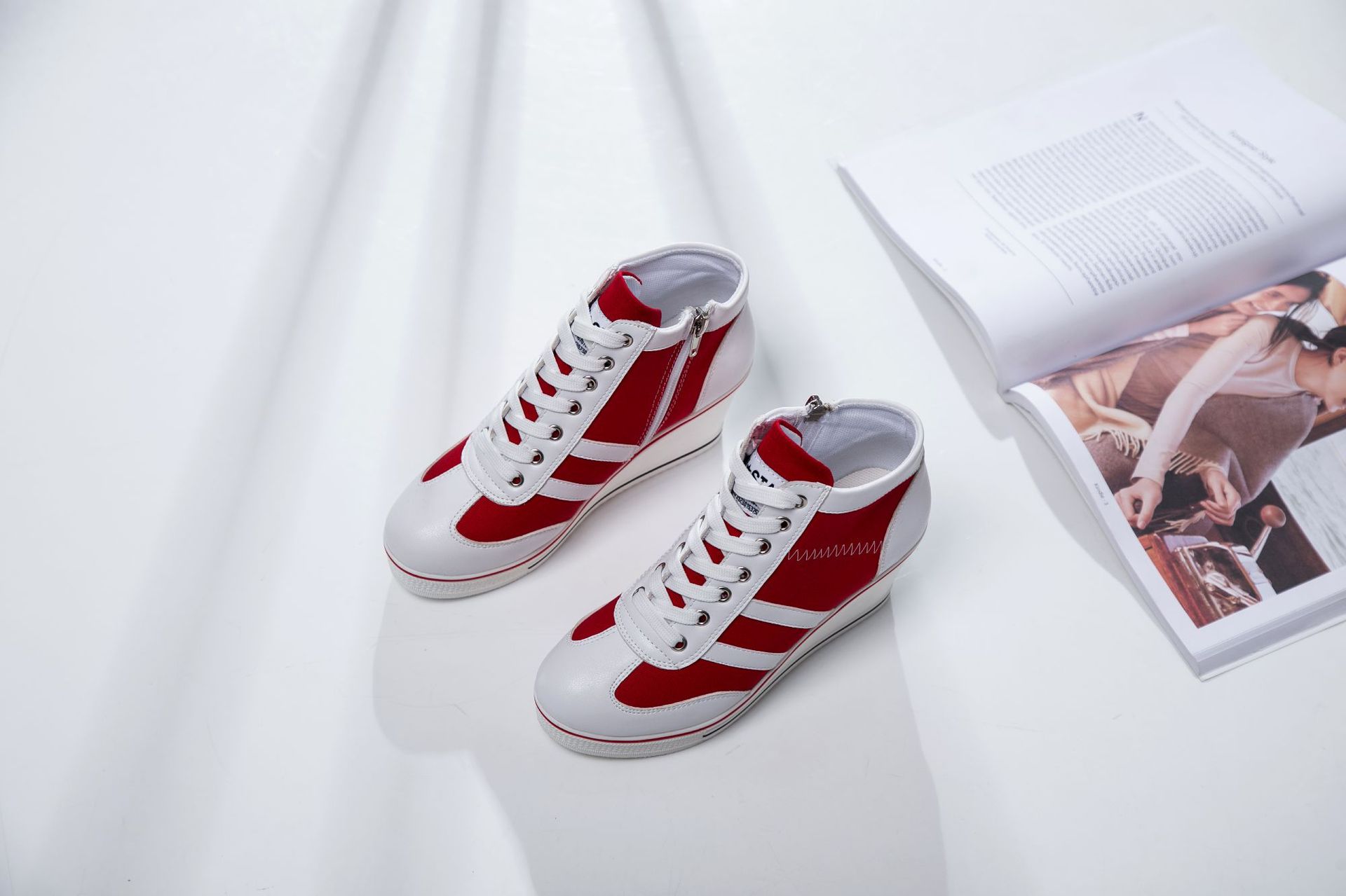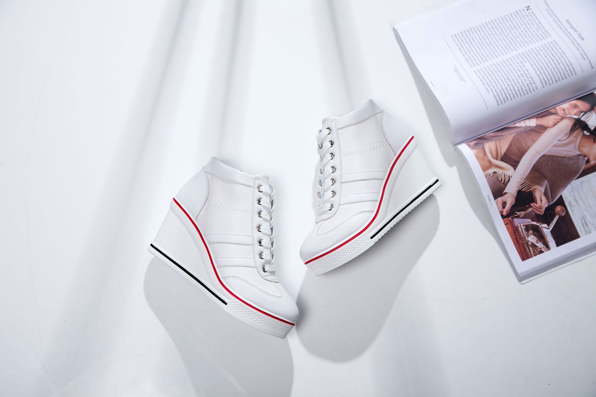 Niulatu Women Wedge Mesh Platform Casual Sneakers Side Zip Lace Cake Heel Booties 8cm Height Increased Canvas Stitching Color Shoes DJSE