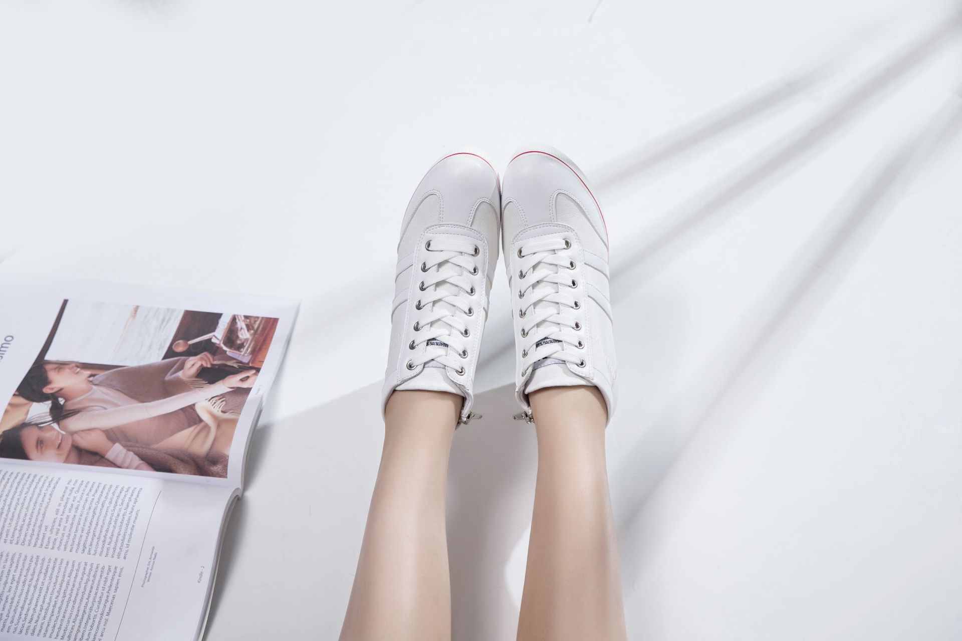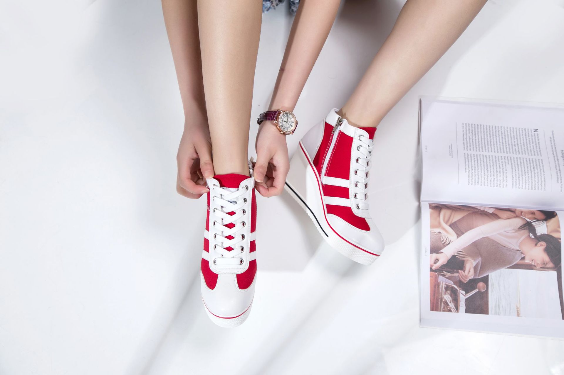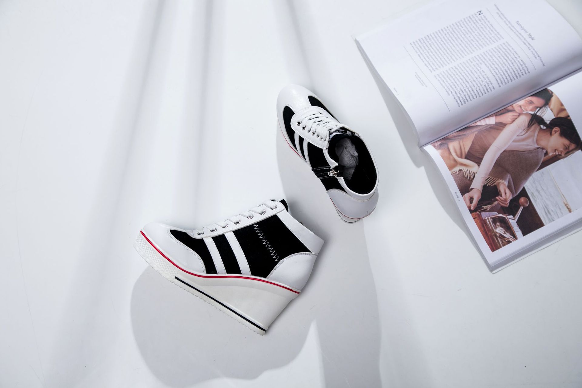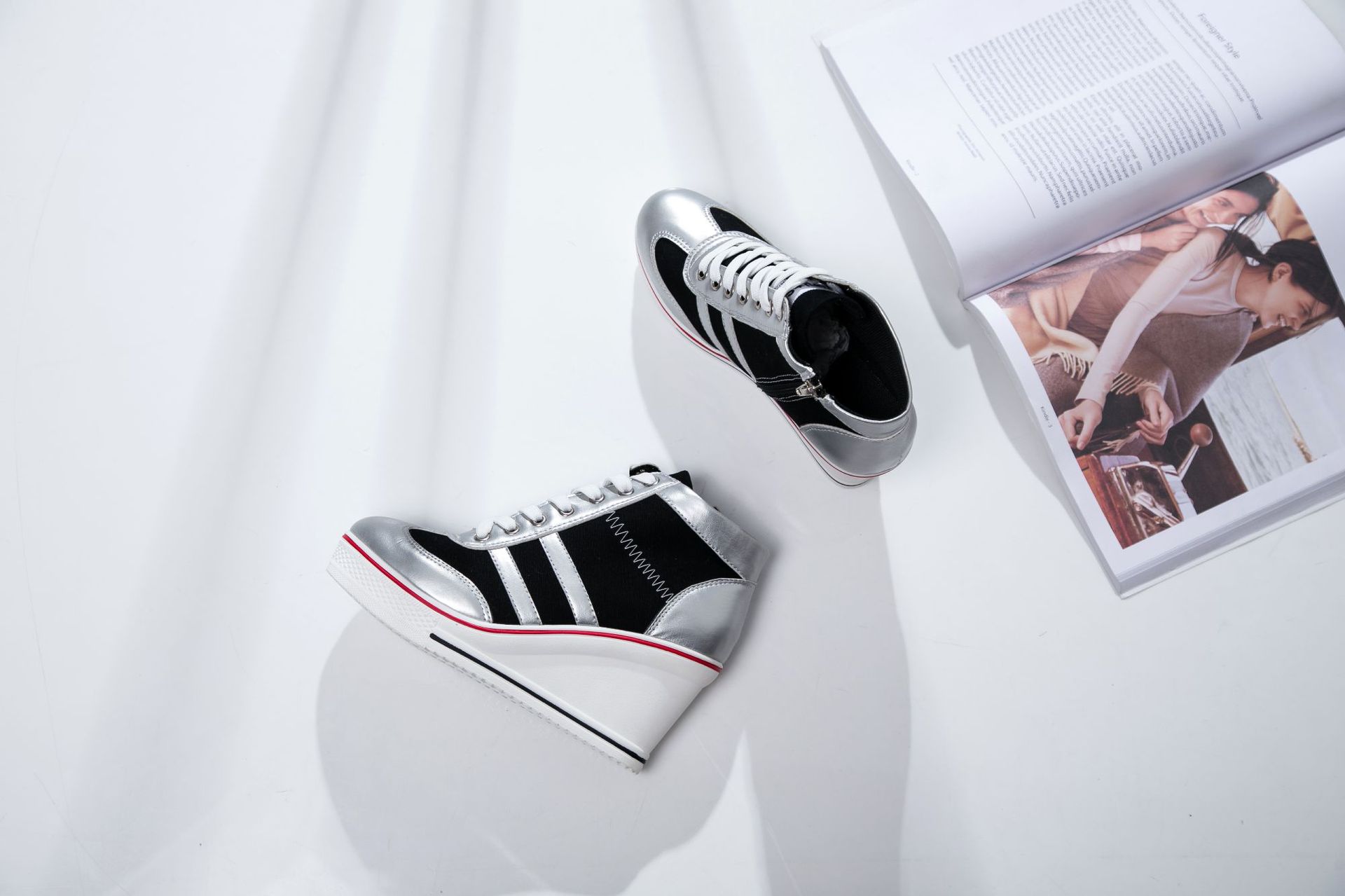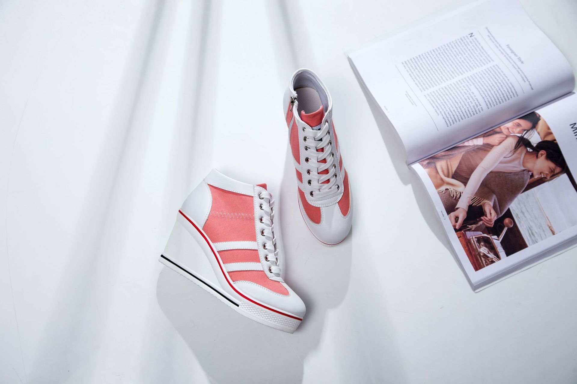 Niulatu Women Wedge Mesh Platform Casual Sneakers Side Zip Lace Cake Heel Booties 8cm Height Increased Canvas Stitching Color Shoes DJSE