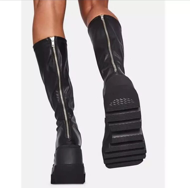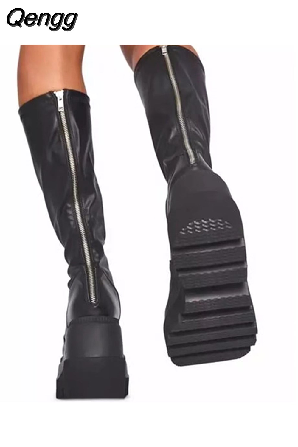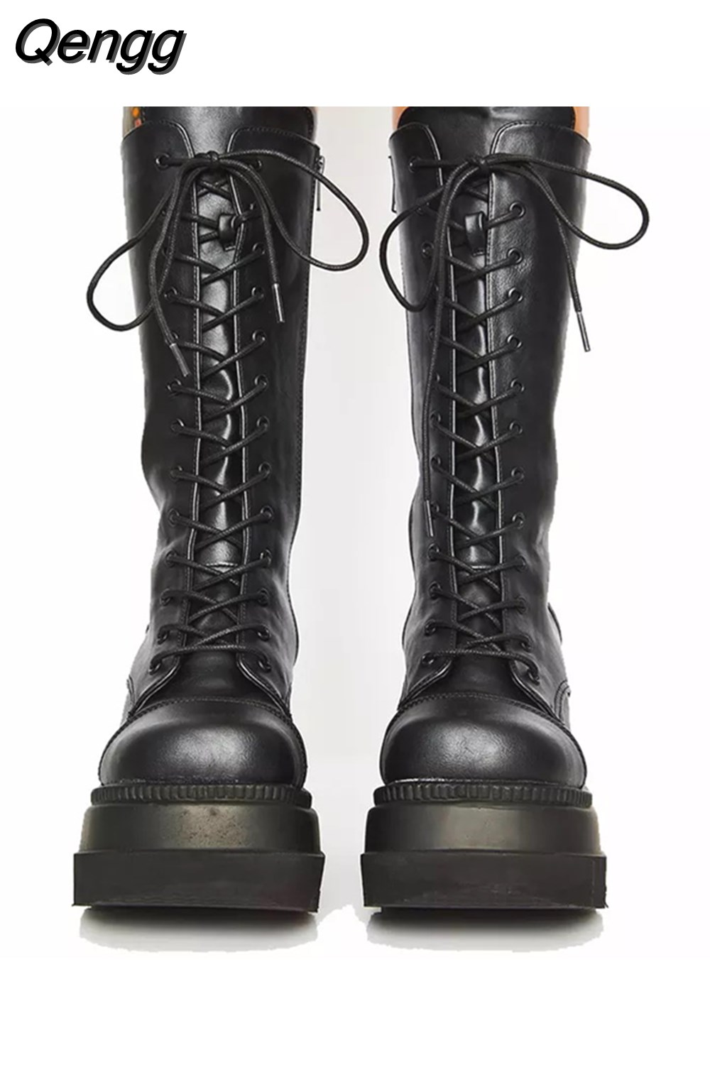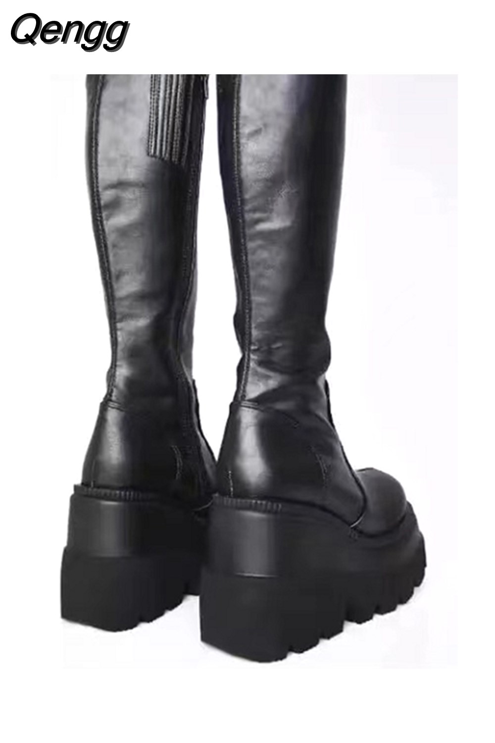 Niulatu Women's Boots 2025 Ladies Fashion Platform Boots Chunky Heel Wedges Mid Calf Women Boots Casual Shoes Woman Thigh High Boots DJSE