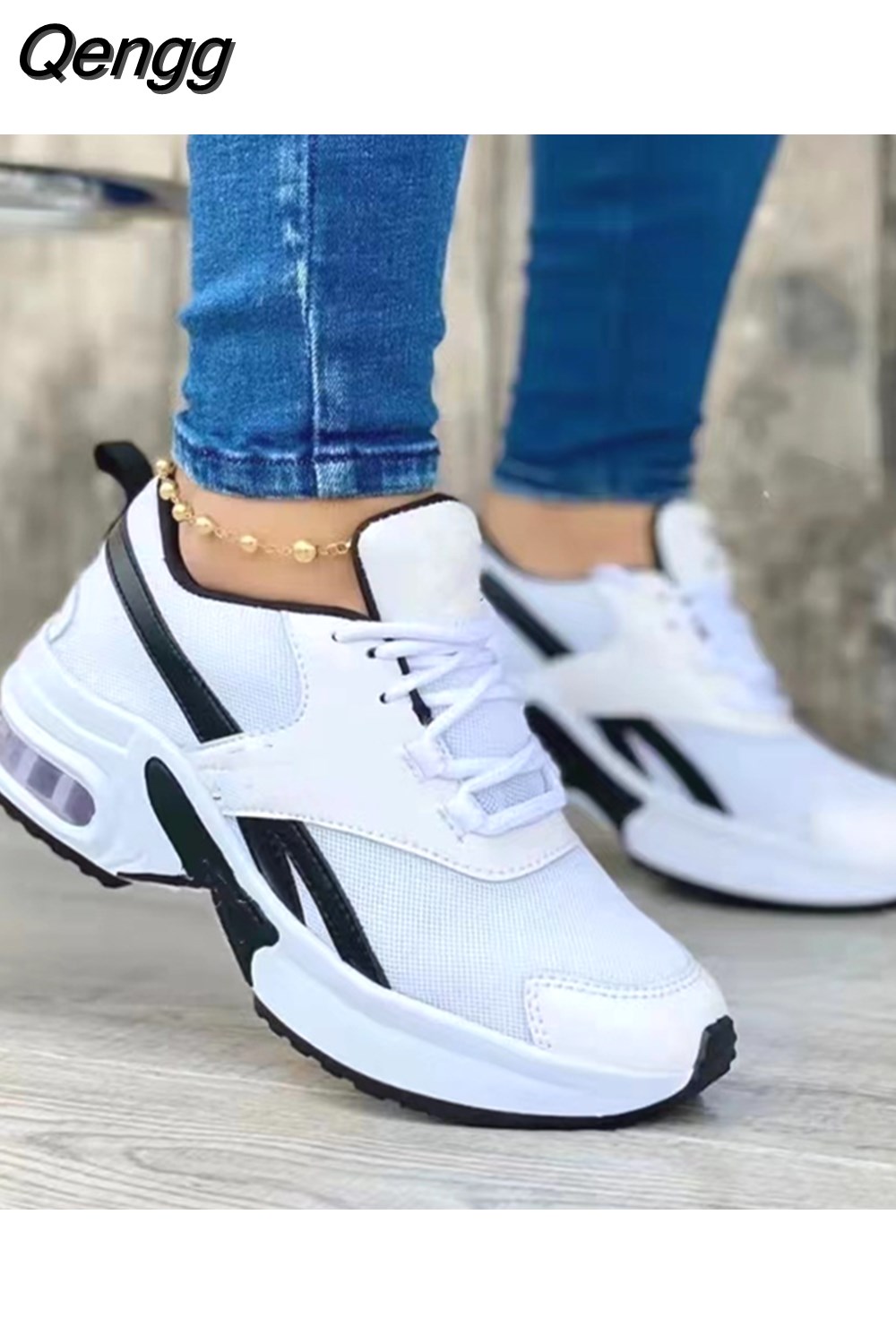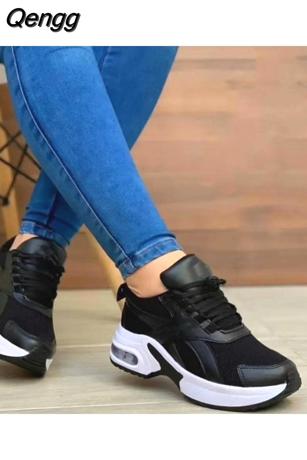 Niulatu Women's Fashion Casual Shoes Solid Color Lace Up Sneakers Mesh Breathable Plus Size Platform Shoes Zapatillas De Mujer DJSE