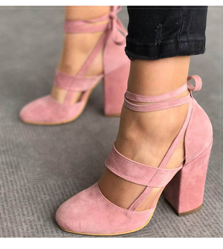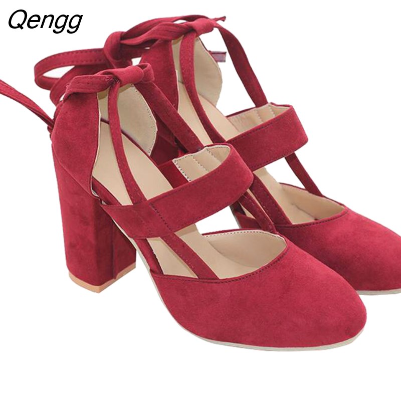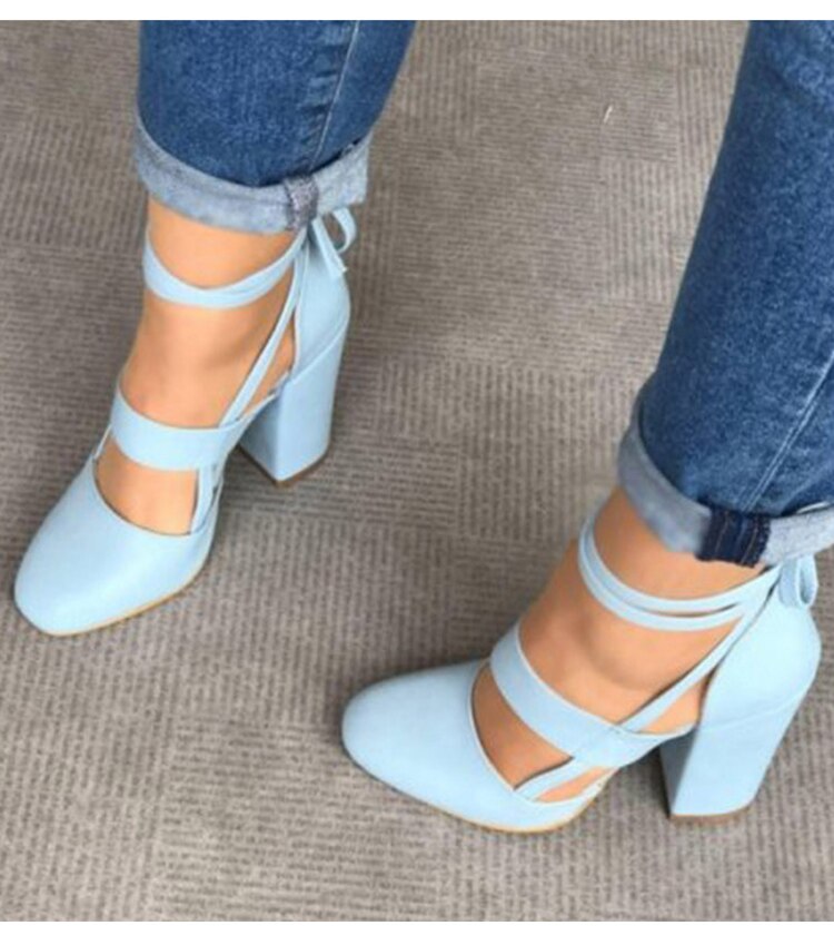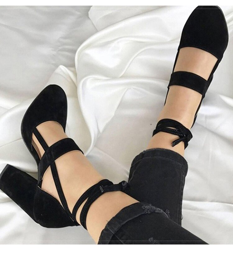 Niulatu Women's Pumps Plus Size 35-43 Women Gladiator Summer High Heels for Party Wedding Shoes Thick Heels Fashion Lace-up Female Black DJSE