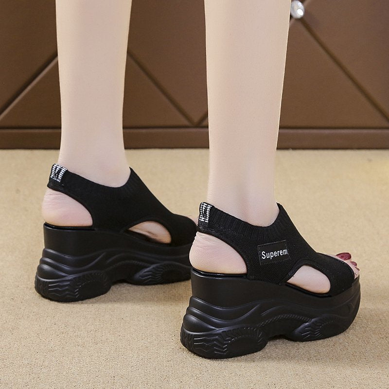 Niulatu Women's Sandals 2025 Summer Wedge Heel Elastic Cloth Cover Foot Ladies Sandals Thick-soled Fashion Trifle Elevation Casual Shoes DJSE