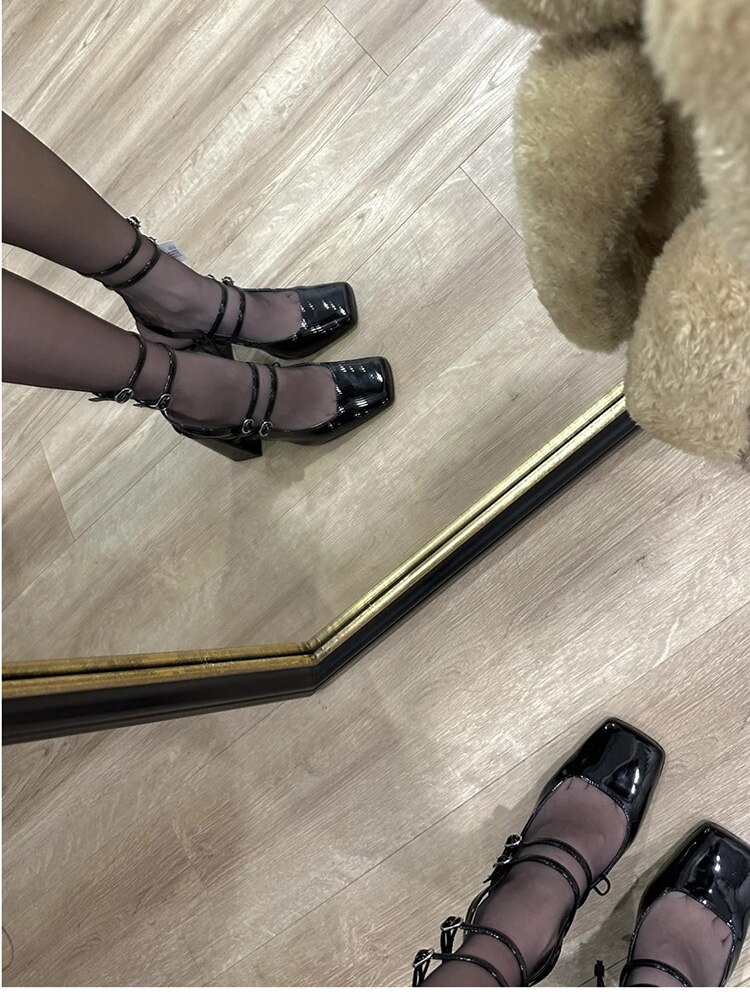 Niulatu Women's Sandals Summer 2025 New Patent Leather Square Toe Buckle Sexy Mary Jane Party Ladies Shoes Luxury Brand Designer Shoes DJSE