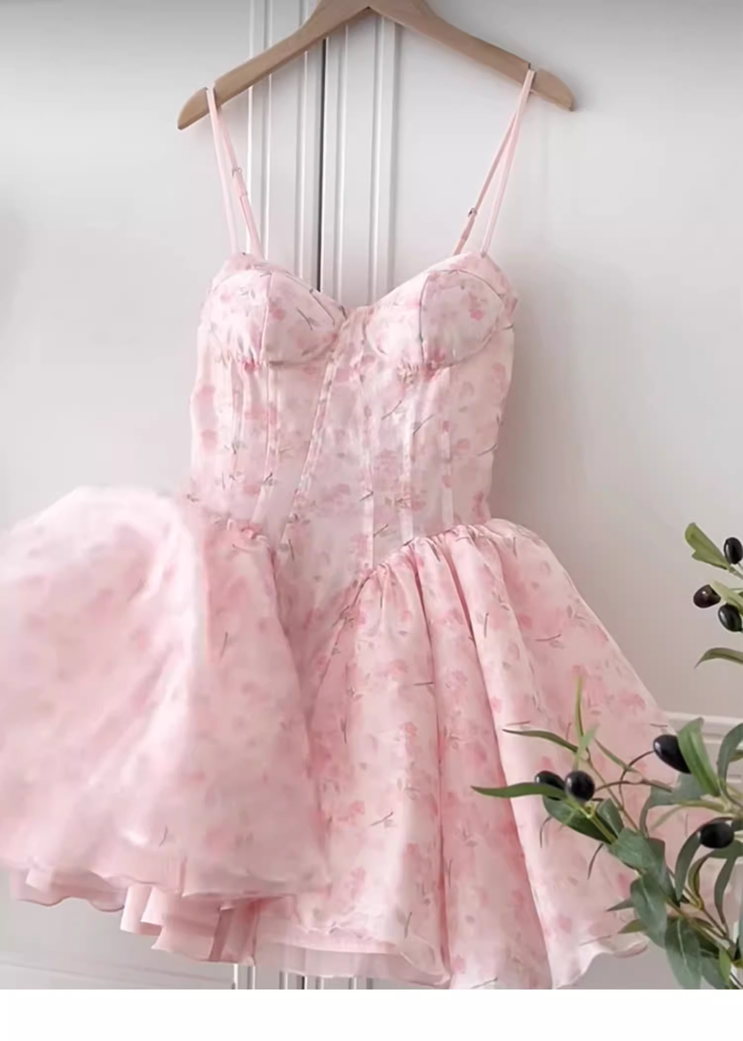 Pretty Ball Gown Spaghetti Straps Floral Pink Short Homecoming Dress Summer Middle School Formal 8th Grade Hoco Dresses Summer Homecoming Outfits HZ1214