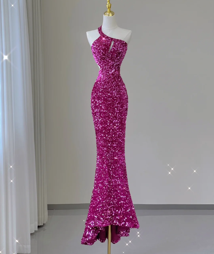 Pretty Mermaid One Shoulder Sequin Sleeveless Long Prom Dresses Evening Dresses HZ1214