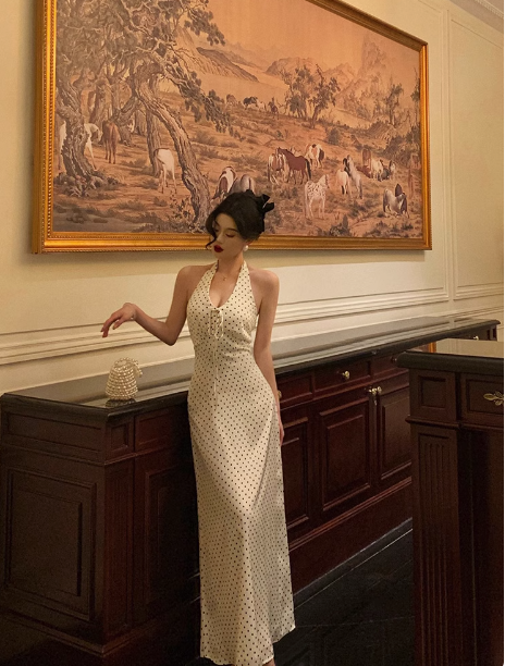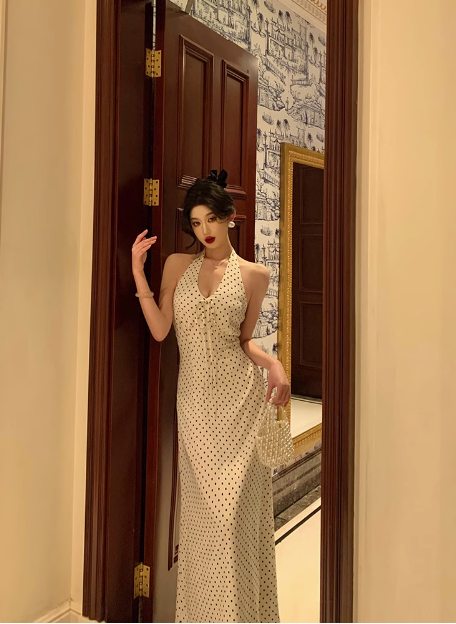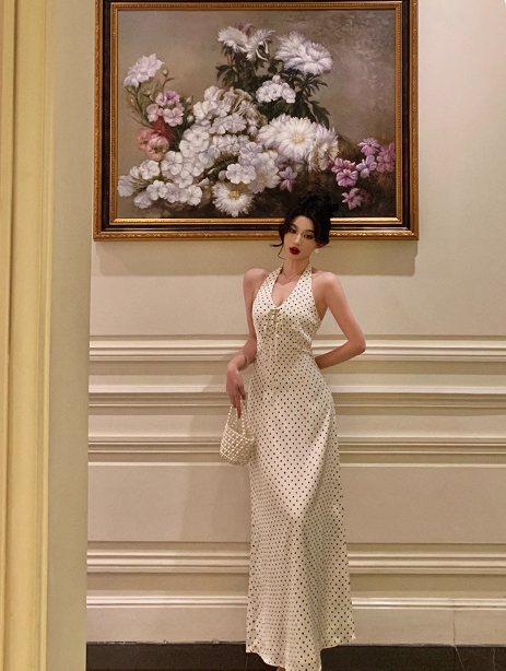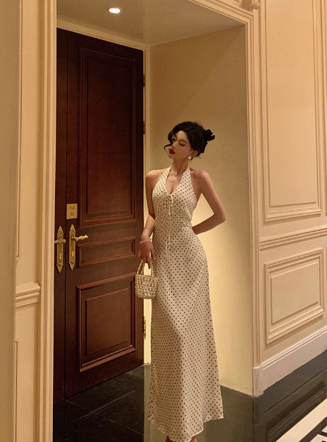 Pretty Sheath Halter Black Polka Dots 21st Birthday Dress Party Outfits Birthday Outfits For Women HZ1214