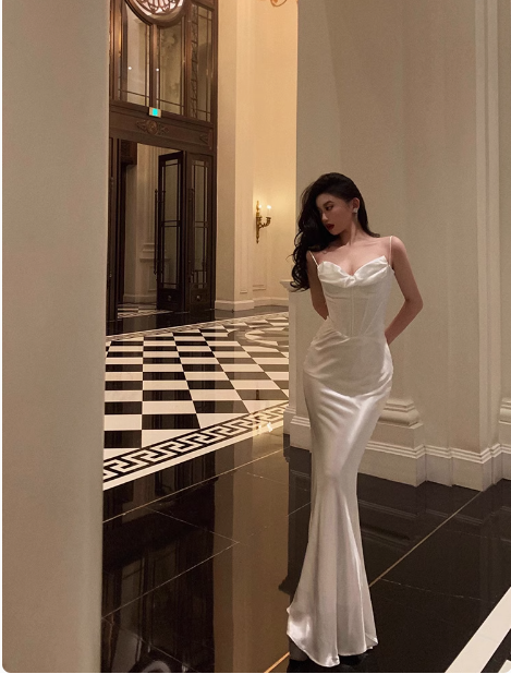 Sexy Mermaid White Spaghetti Straps Satin 21st Birthday Dress Party Gown Birthday Outfits Birthday Dress Ideas For Women HZ1214