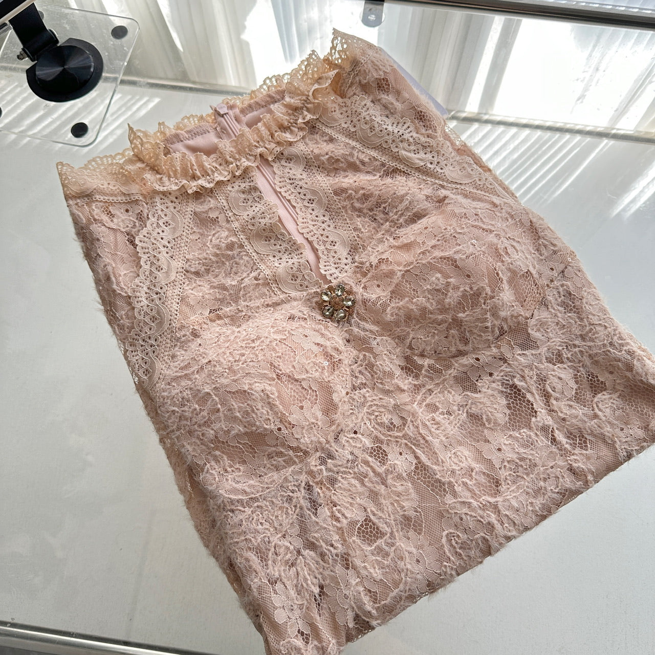 Sexy Sheath Jewel Floral Pink Lace Summer Dress Holiday Party Outfits For Women HZ1214