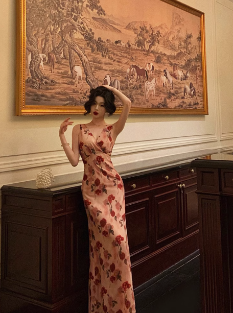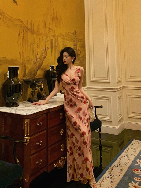 Sexy Sheath V Neckline Floral Pink 18th Birthday Dress Holiday Party Birthday Outfits For Women HZ1214
