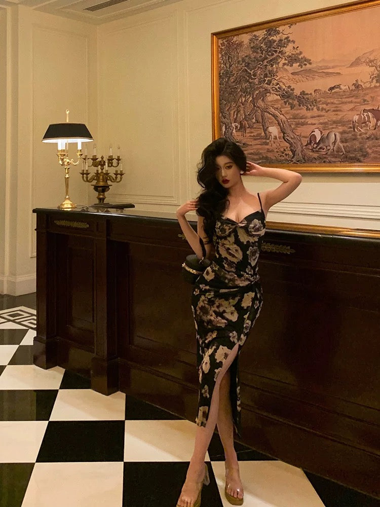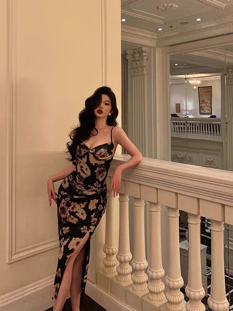 Niulatu Sheath Spaghetti Straps Floral Prom Dresses Birthday Outfits SD769