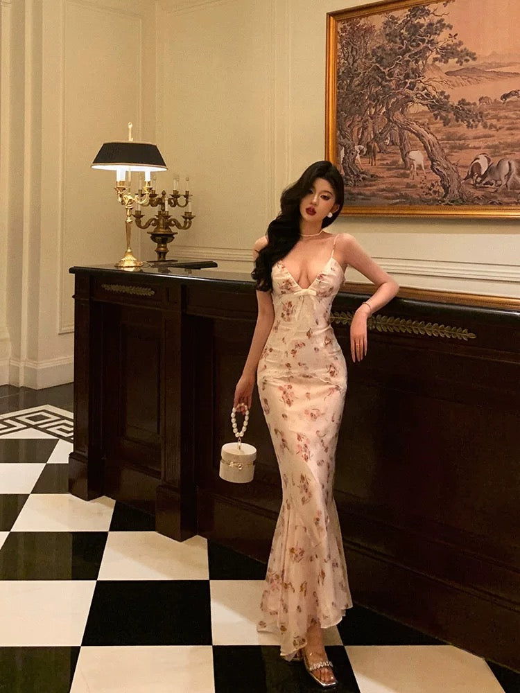 Niulatu Sheath Spaghetti Straps Pleated Floral Prom Dresses Birthday Outfits Evening Gown SD795