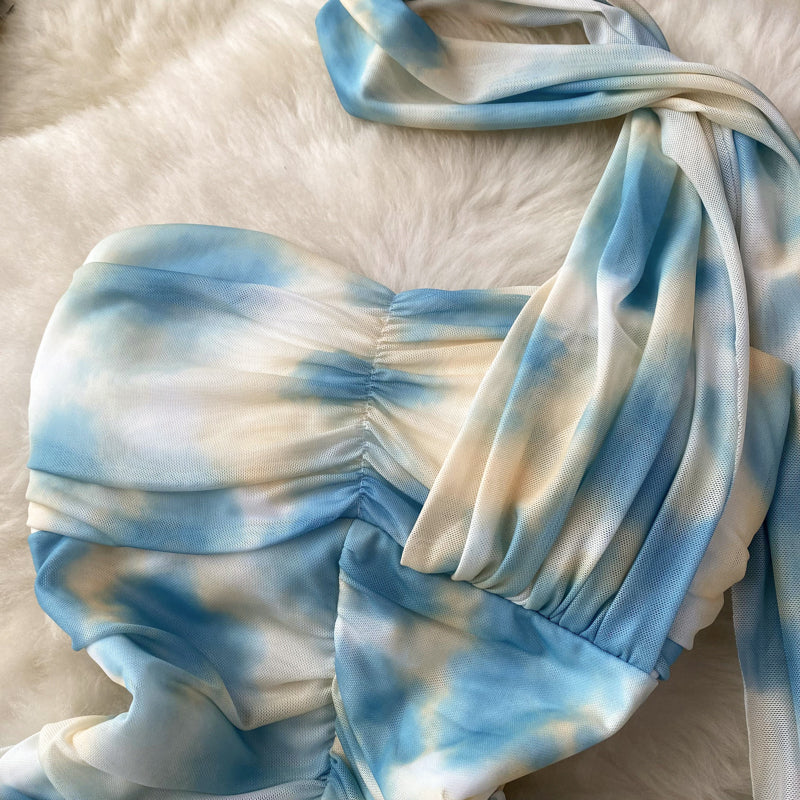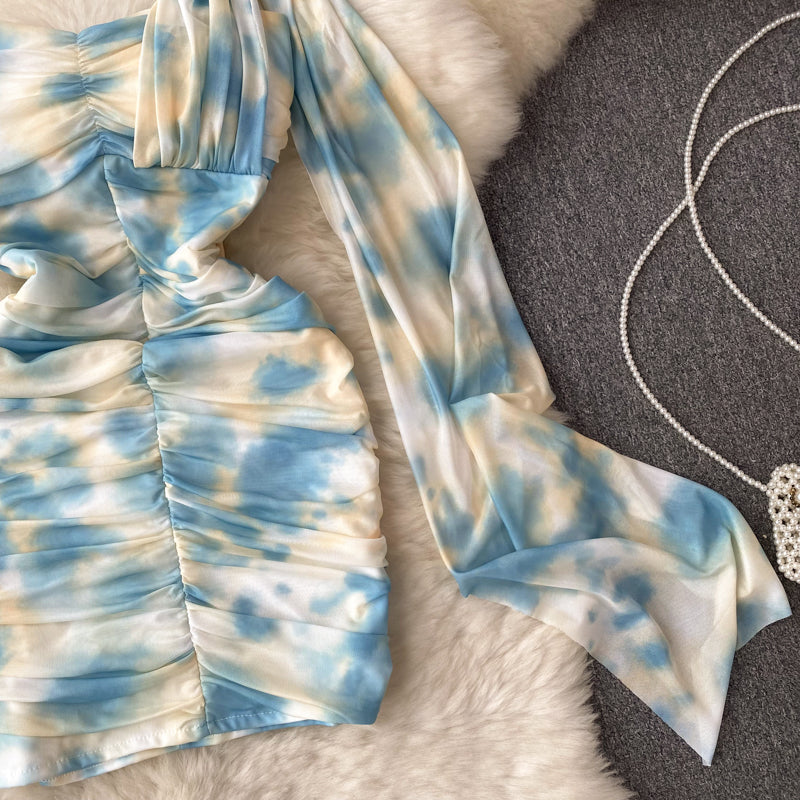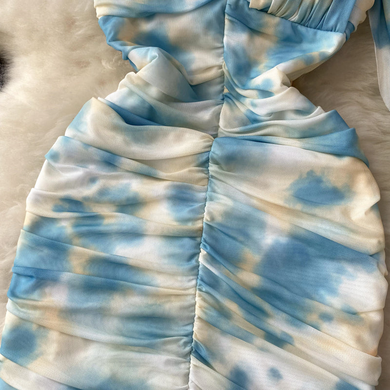 Niulatu Sheath Strapless Blue Floral Holiday Dresses Short Length Women's Dress SD1275