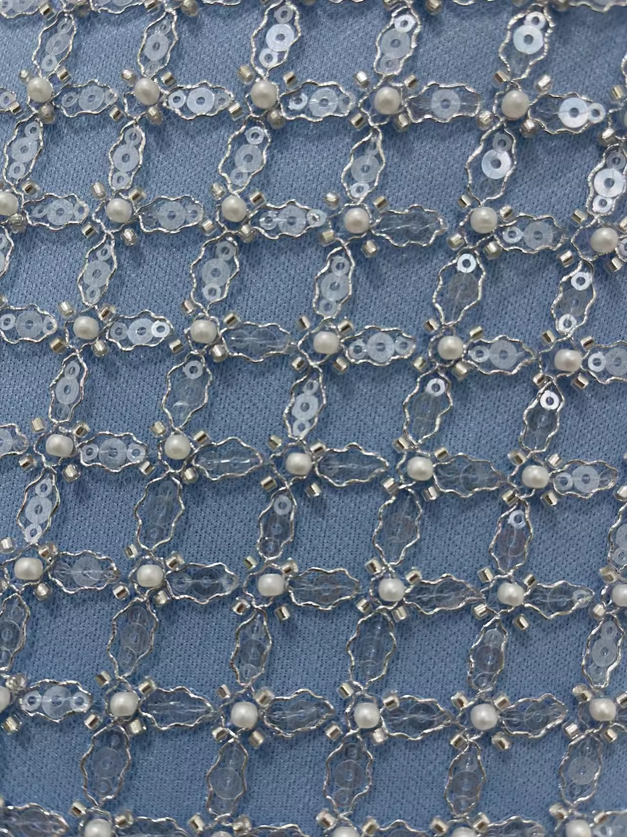 Niulatu Sheath Straplesss Blue Sequin Slit Vacation Dress Long Birthday Outfits SD007