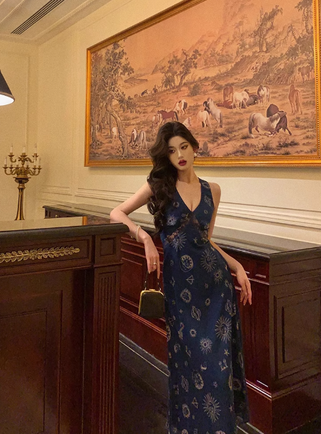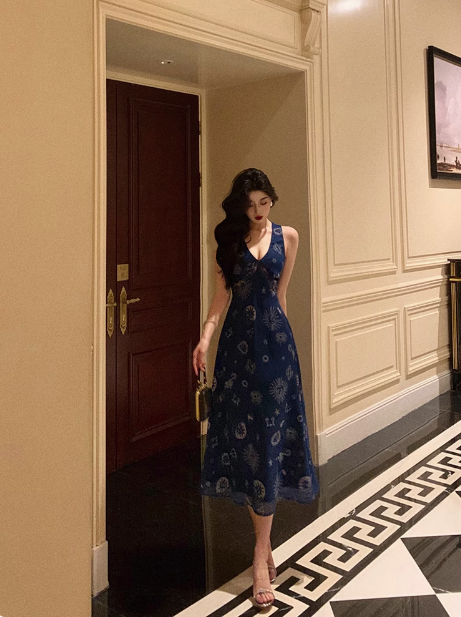 Vintage A line V Neckline Navy Blue Chiffon 18th Birthday Dress Party Gown Birthday Outfits For Women HZ1214