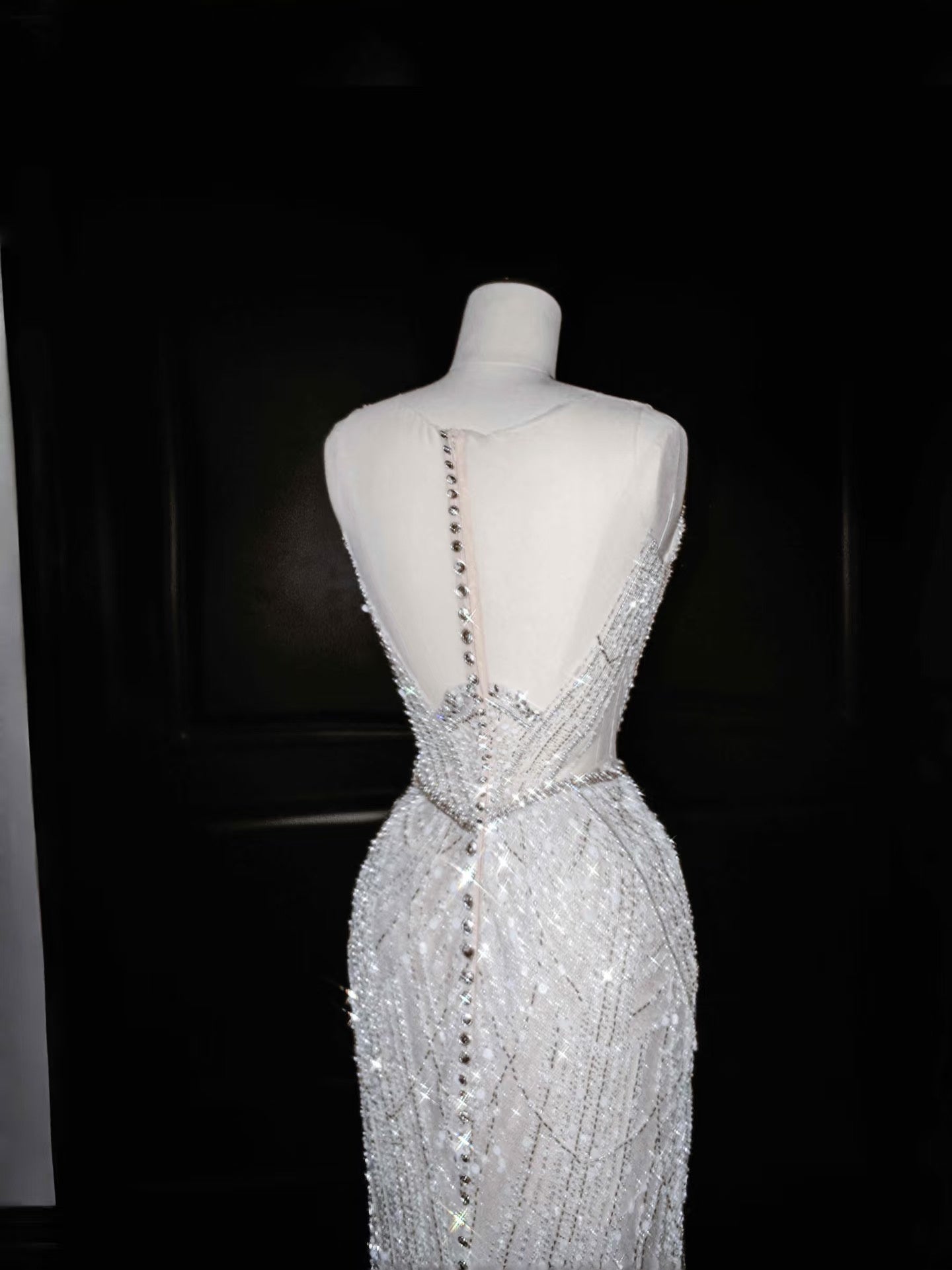 Vintage Mermaid Silver Gray Sequins Long Prom Dress Party Dress Graduation Dresses Birthday Outfits HZ1214