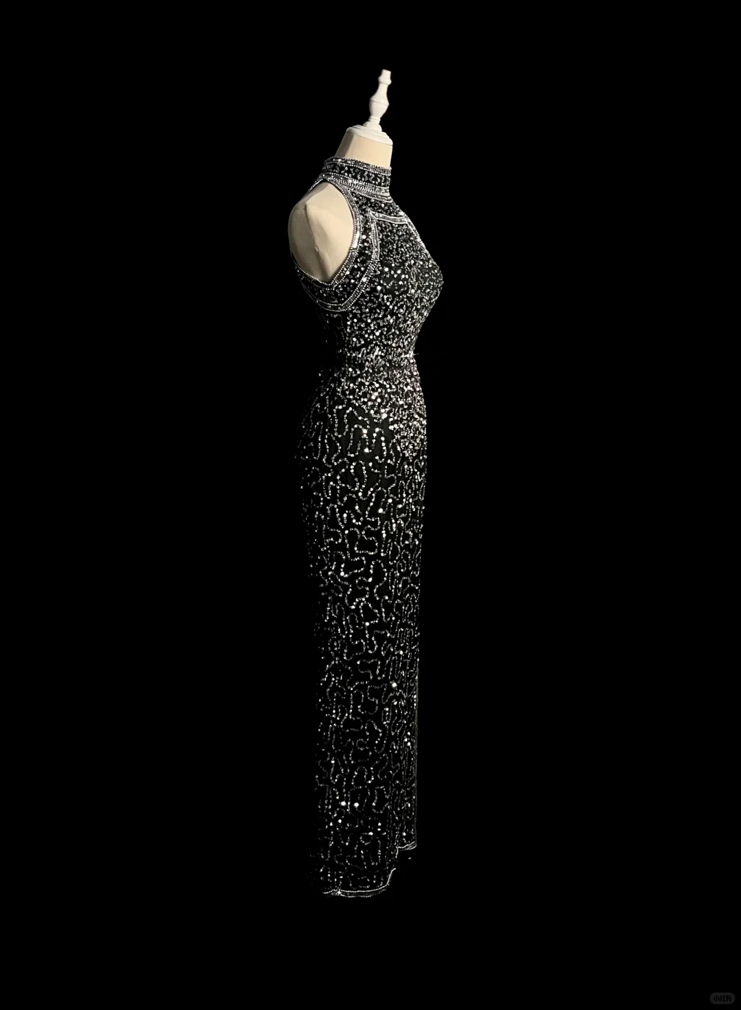Vintage Sheath High Neck Sequin Long Evening Party Gowns Formal Dresses Prom Dresses HZ1214